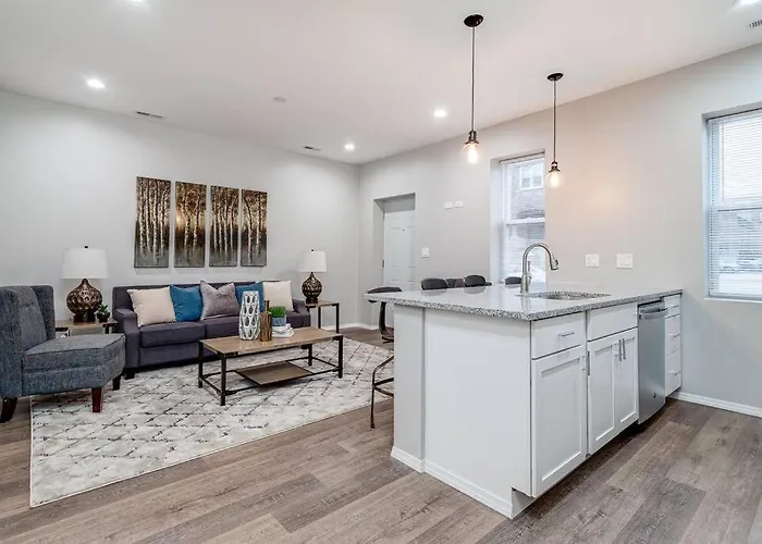The Chicago holiday home in the Lincoln Park district is situated 1.5 miles from the 35 - acre Lincoln Park Zoo and 1.3 miles from such shopping places as the beer Gallagher Way Garden. Second City is approximately 10 minutes by car from the villa, and the botanical garden "Lincoln Park Conservatory" is about 25 minutes' stroll away. Suite 2 On Southport 4 Queen Beds villa offers sports enthusiasts to discover the baseball stadium "Wrigley Field", located 1.4 miles away.